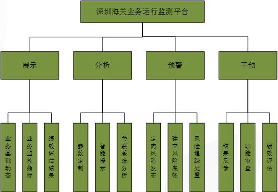 海關(guān)業(yè)務(wù)運(yùn)行監(jiān)測平臺是通過對關(guān)區(qū)業(yè)務(wù)的展示、分析、預(yù)警、干預(yù),為關(guān)領(lǐng)導(dǎo)和職能部門掌握業(yè)務(wù)動態(tài)、加強(qiáng)監(jiān)控分析、及時防控風(fēng)險、增強(qiáng)管理效能提供有力手段的智能化職能管理平臺。